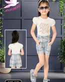 Eurynome Kidswear Girls—Going To Town and taking charge! Bold check shorts and a vibrant sticker top prove outdoor play is for girls who lead, laugh, and play as hard as anyone. Ages 3–9.