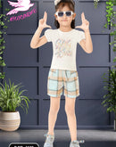 Eurynome Kidswear Girls—Going To Town and taking charge! Bold check shorts and a vibrant sticker top prove outdoor play is for girls who lead, laugh, and play as hard as anyone. Ages 3–9.