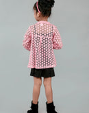 • Pink crocheted cotton long shirt has floral design with full sleeves