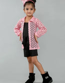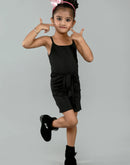 Eurynome Kidswear Girls—Luxe Tencel jumpsuit paired with a rare, pure cotton crocheted black shirt, floral full sleeves, and comfy belt. Trendy elegance and next-level comfort for stylish girls. Ages 3–9