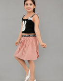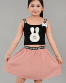 Eurynome Kidswear Girls – Teddy Crop Top & Skirt Set, Black Cotton Lycra Top with Handcrafted Bunny, Georgette Skirt, Elastic LOVE Lace, Trendy & Comfy Ages 3-6.