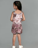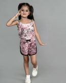 Eurynome Kidswear Girls – Tie Dye Paris Romper, Soft cotton, love lace straps, chic bow, adventure-ready fit. Ages 3-6