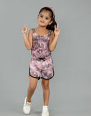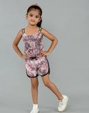 Eurynome Kidswear Girls – Tie Dye Paris Romper, Soft cotton, love lace straps, chic bow, adventure-ready fit. Ages 3-6
