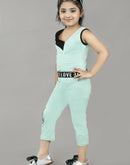 Eurynome Kidswear Girls – Sleeveless Top & Eurynome Pant Set, Striking Black Edges, Signature Logo Capris, Sporty Lace Waist, Summer Chic Ages 3-6.