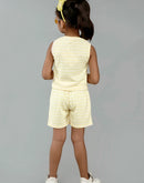 Eye-catching lemon-mint-coloured top and pant duo adorned with delightful multi-colour waves - perfect for cheerful unicorn lovers!