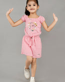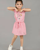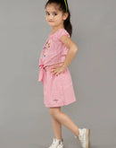 Eurynome Kidswear Girls – LOVE REQUIRED Pink Mini Skirt & Top, Soft Stretch Fabric, Knot Detail, Stylish Buckle, Butterfly Accents, Partywear Ages 3-6.