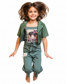 Eurynome Kidswear Girls- A spirited two-piece romper set in soft cotton, designed for girls who love to jump, run and have fun. ages 3-9 years