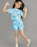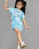 Eurynome Kidswear Girls- Pure Cotton Tie-Dye Hot Pant & FB Top Set – Playful Prints, Breathable Comfort for Energetic Girls Age 3-6, Perfect for All-Day Fun and Play