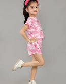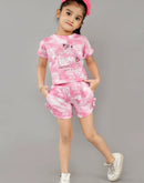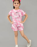 Eurynome Kidswear Girls- Pure Cotton Tie-Dye Hot Pant & FB Top Set – Playful Prints, Breathable Comfort for Energetic Girls Age 3-6, Perfect for All-Day Fun and Play
