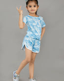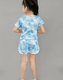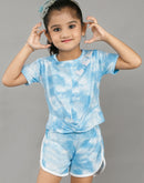 Eurynome Kidswear Girls– Pure Cotton Tie-Dye Hot Pant & Crop Top Set, Sporty Knot Style, Pastel Athleisure Look, Comfy Playwear with Cute Heart Accent, Age 3-6