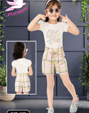 Eurynome Kidswear Girls—Going To Town and taking charge! Bold check shorts and a vibrant sticker top prove outdoor play is for girls who lead, laugh, and play as hard as anyone. Ages 3–9.