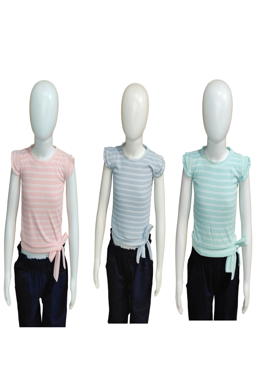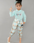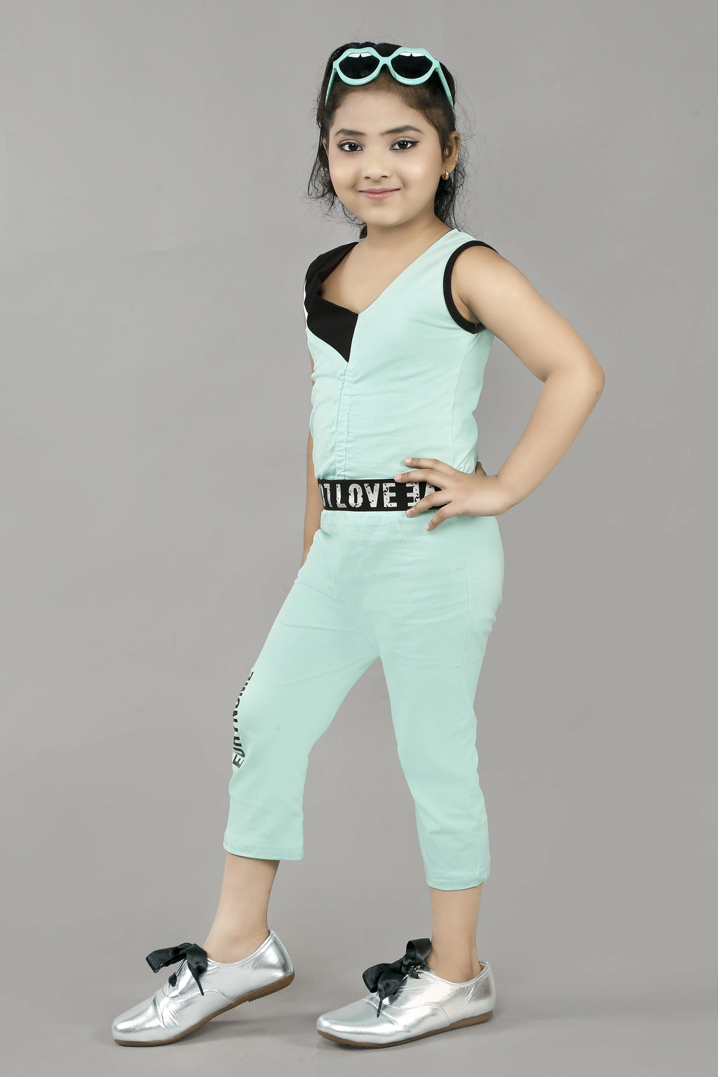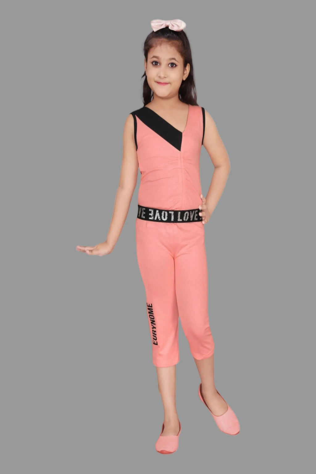 Eurynome Kidswear Girls- Multi Love Set – Georgette-Chiffon V-Neck Top with Metallic LOVE Sticker & Floral Bow, Pure Cotton Capri with Elastic, Stylish & Comfortable Playwear for Girls 3-6
