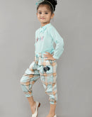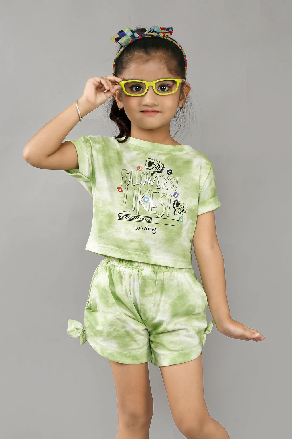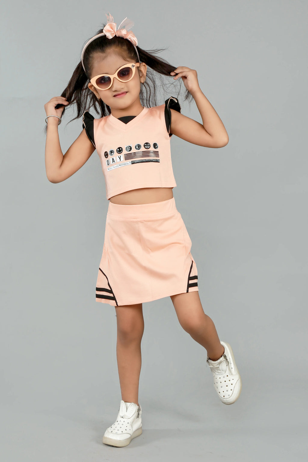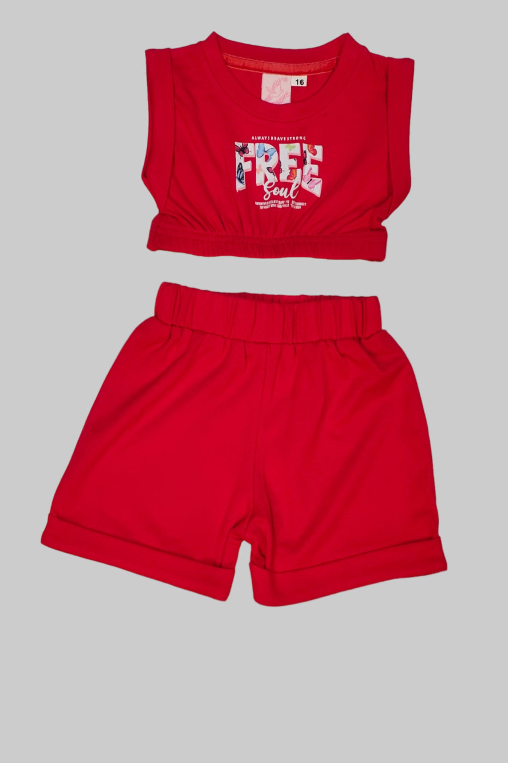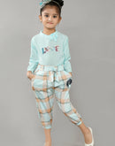 Eurynome Kidswear Girls- Multi Love Set – Georgette-Chiffon V-Neck Top with Metallic LOVE Sticker & Floral Bow, Pure Cotton Capri with Elastic, Stylish & Comfortable Playwear for Girls 3-6