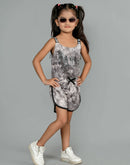 Eurynome Kidswear Girls – Tie Dye Paris Romper, Soft cotton, love lace straps, chic bow, adventure-ready fit. Ages 3-6